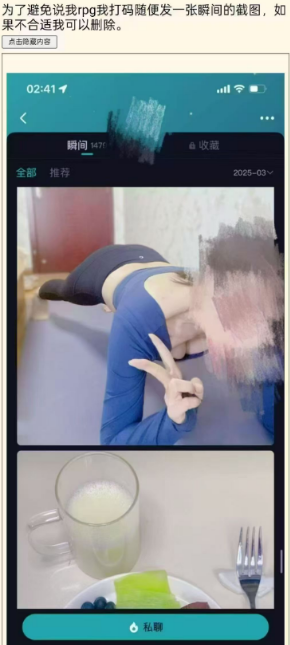 在软件里漫无目的地浏览时,小风意外发现了一位动态频繁的女性用户。