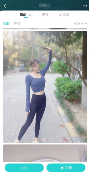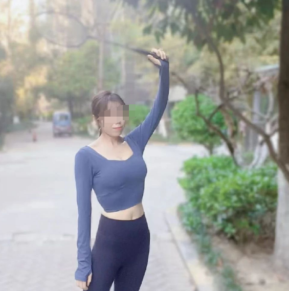 但仔细一瞧,这位女用户穿着低胸运动上衣和瑜伽裤,某些部位若隐若现,明显是在打擦边球。