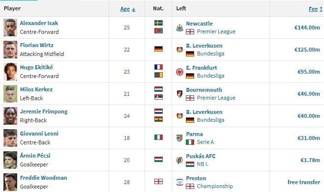 球员身价榜单同样被英超垄断:利物浦完成两笔亿元级签约,切尔西与曼联更新锋线均耗资超2亿欧元,阿森纳以同等投入升级中轴,纽卡斯尔将伊萨克转会收益全部用于补强,热刺则引进两位价值6000万欧元级别的球星。